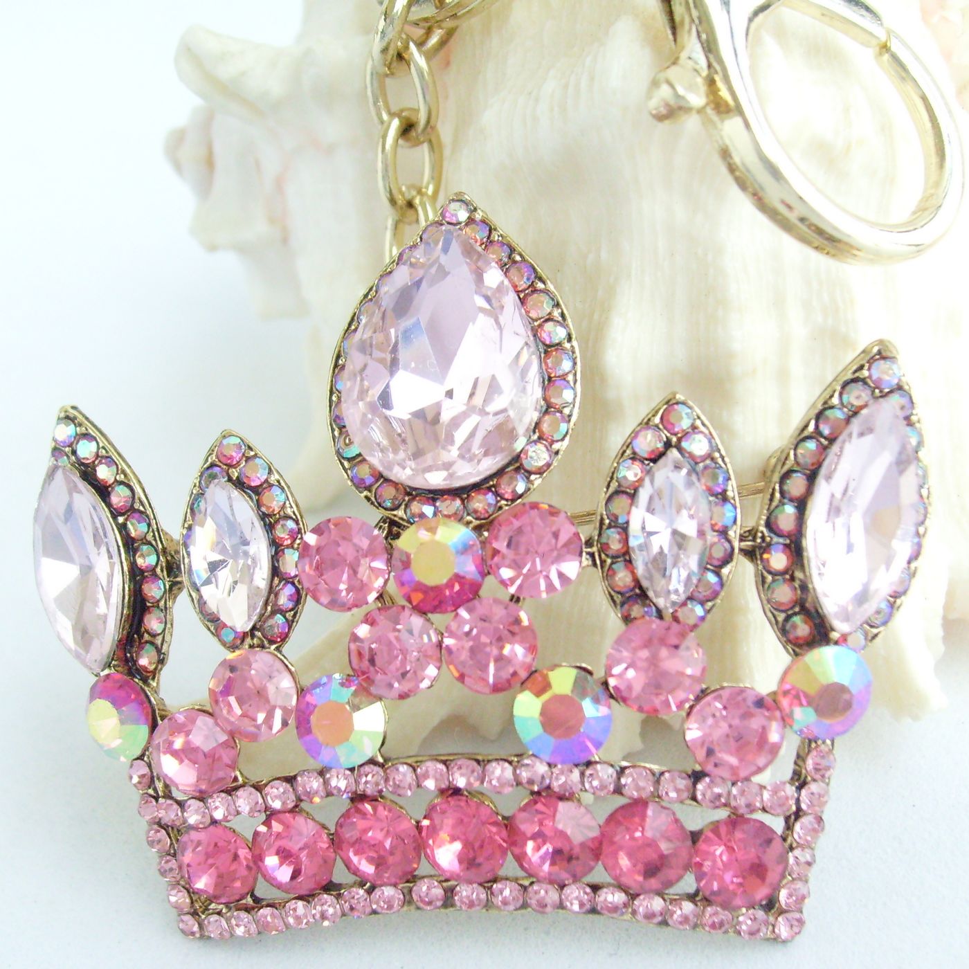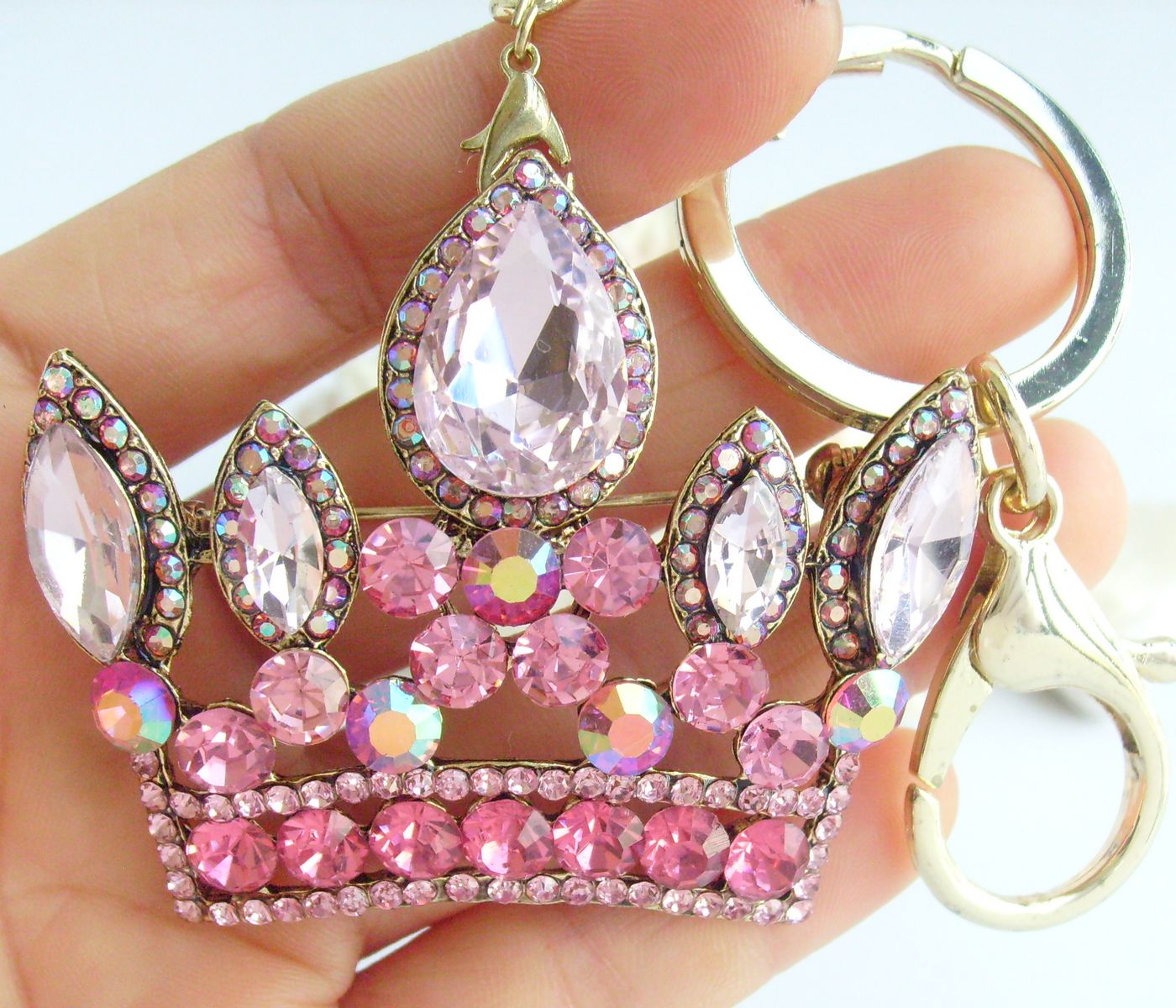 Sindary Rhinestone Crystal Unique Crown Keychain Pendant KP05050 (Gold-Tone Pink) 40g