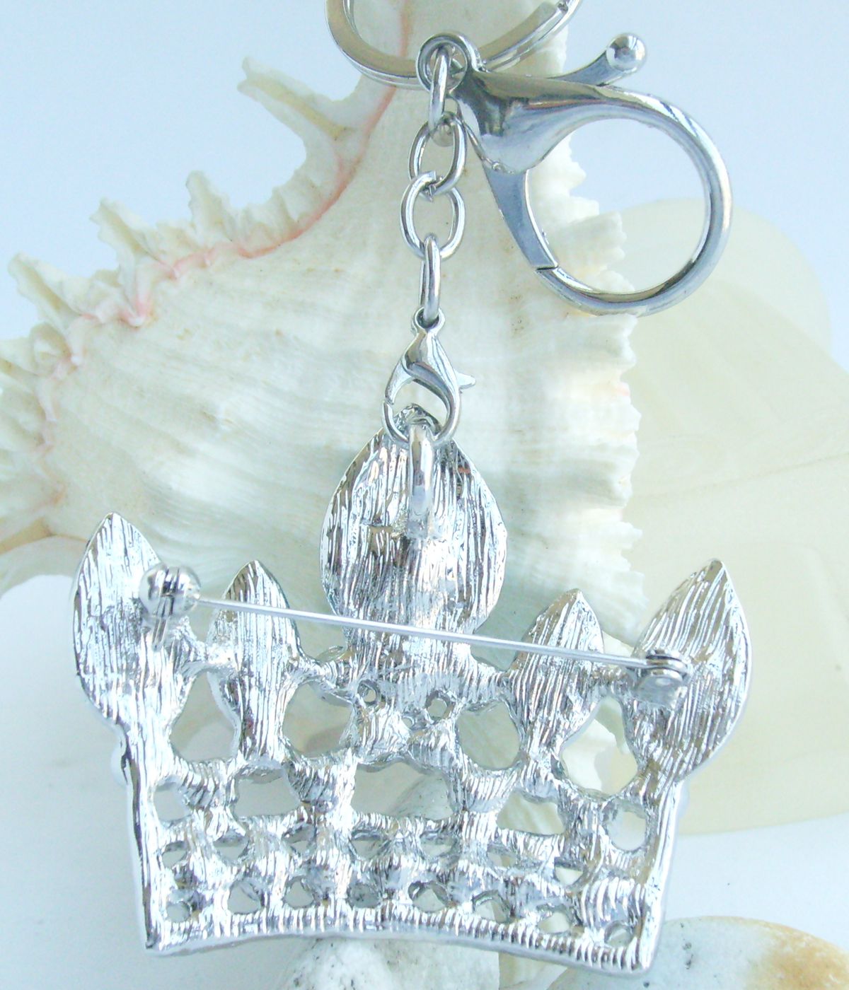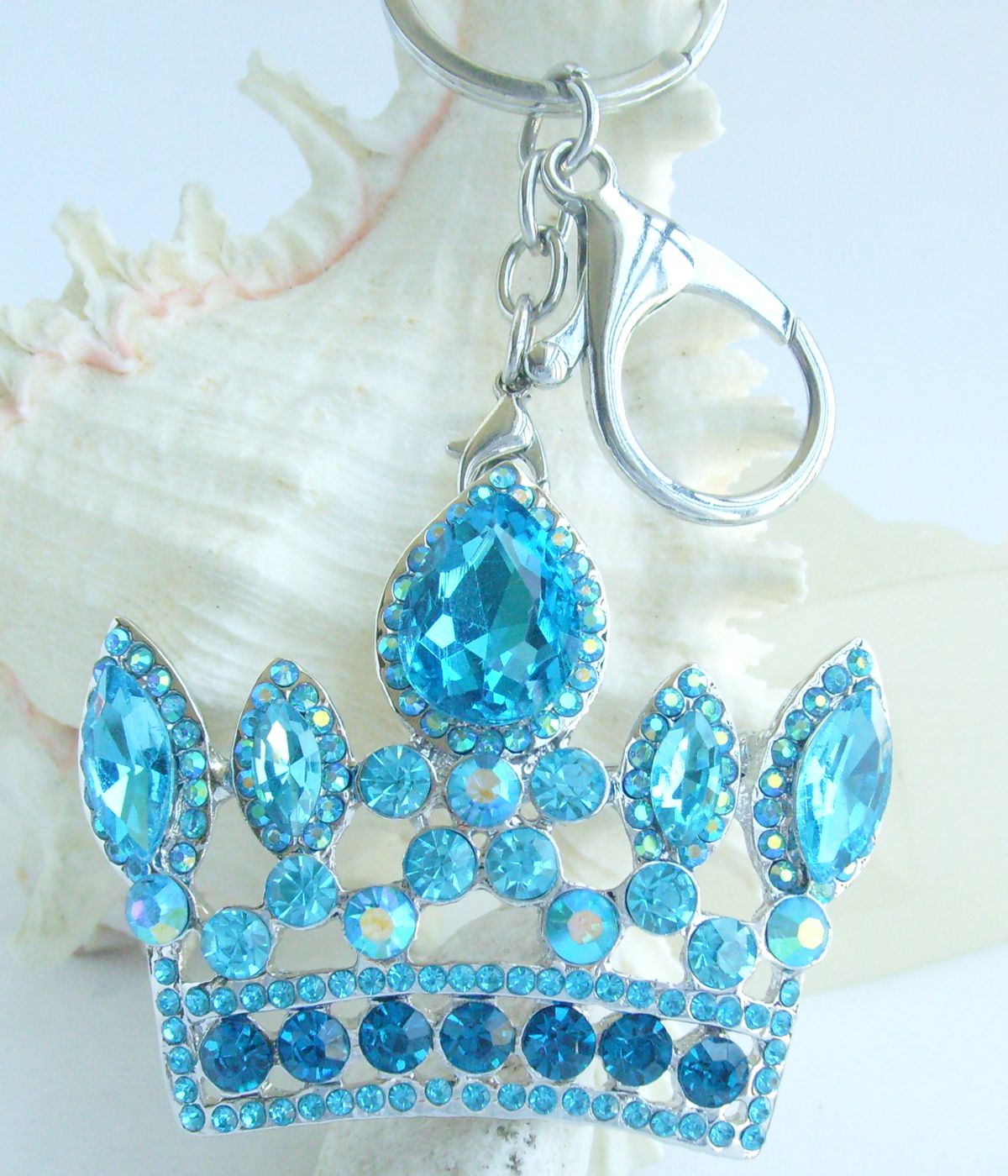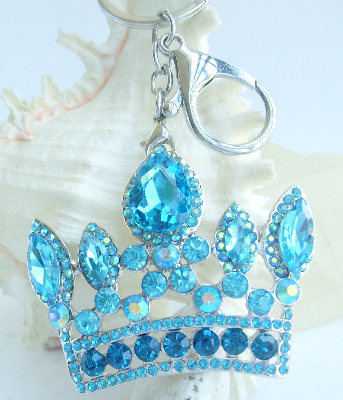 Sindary Rhinestone Crystal Unique Crown Keychain Pendant KP05050 (Silver-Tone Lake Blue) 40g