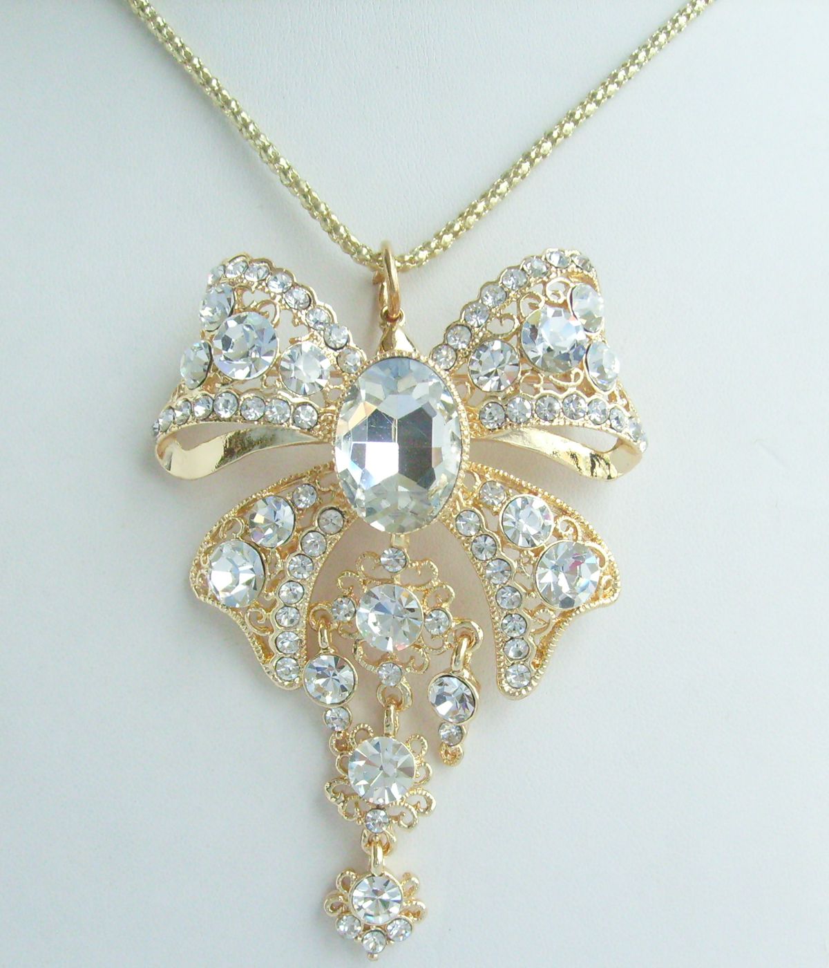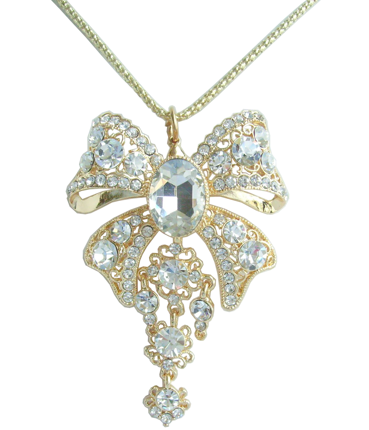 Sindary Rhinestone Crystal Elegant Bowknot Necklace Pendant NL04503 (Gold-Tone Clear) 40g