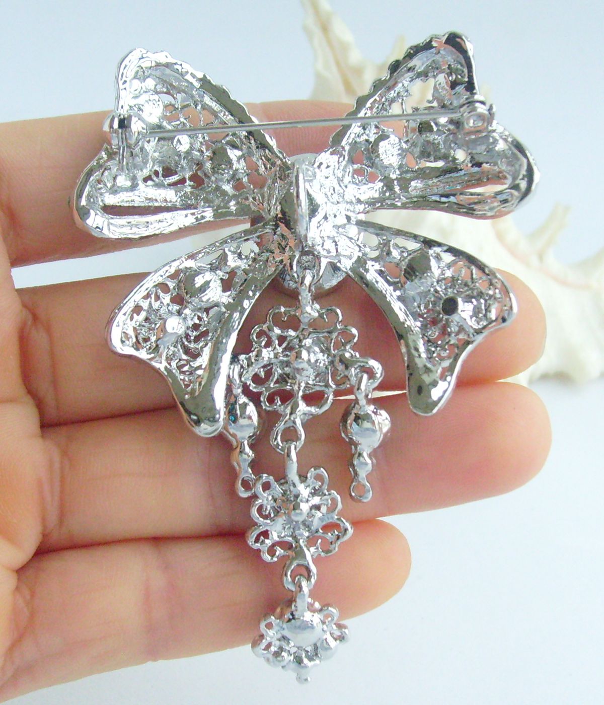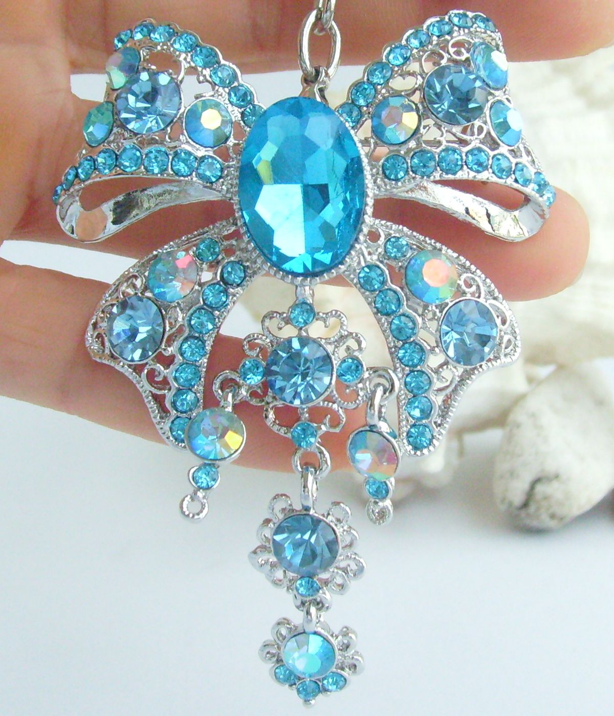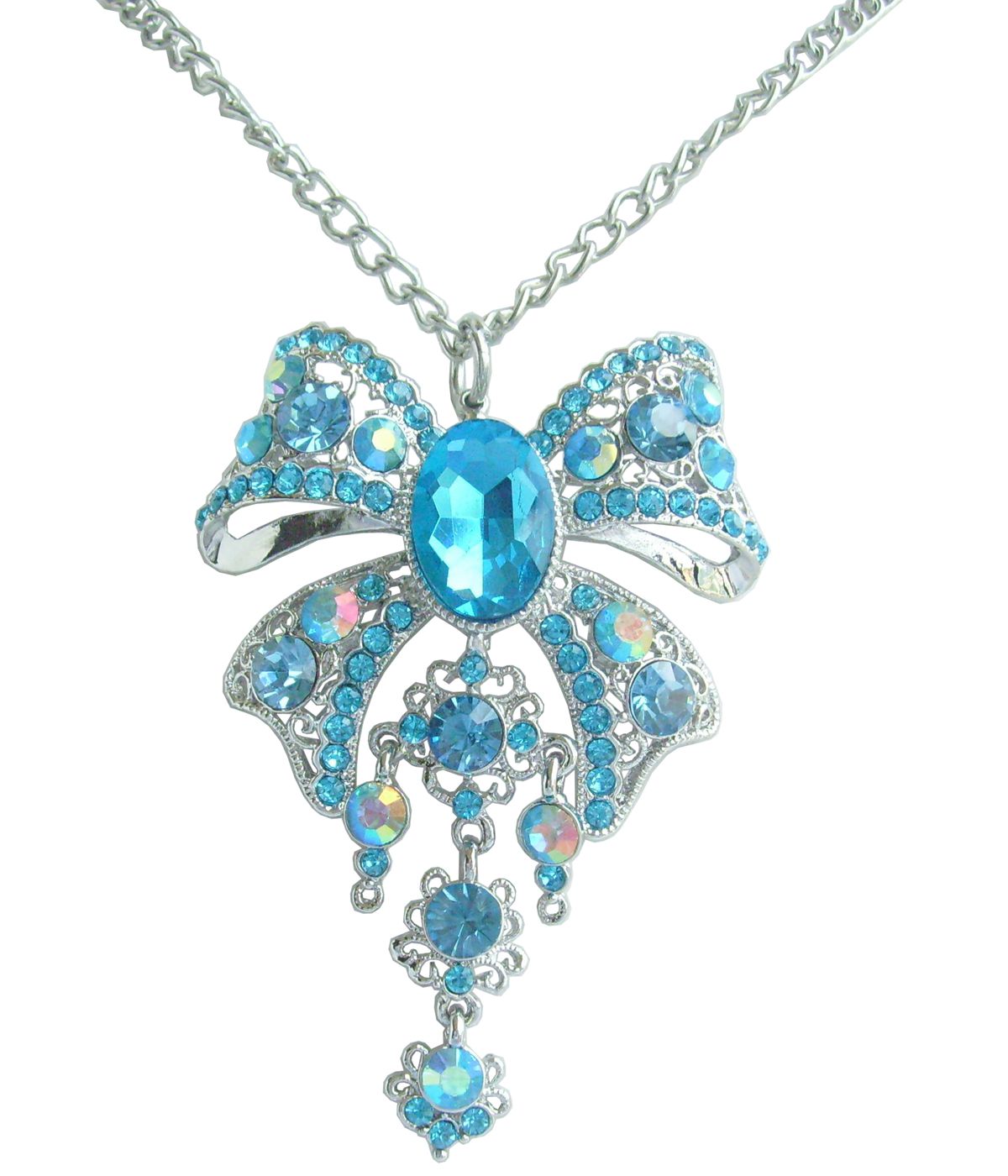 Sindary Rhinestone Crystal Elegant Bowknot Necklace Pendant NL04503 (Silver-Tone Lake Blue) 40g