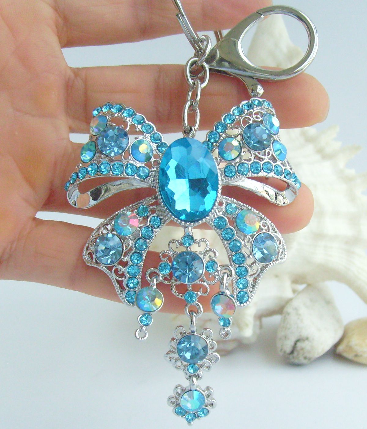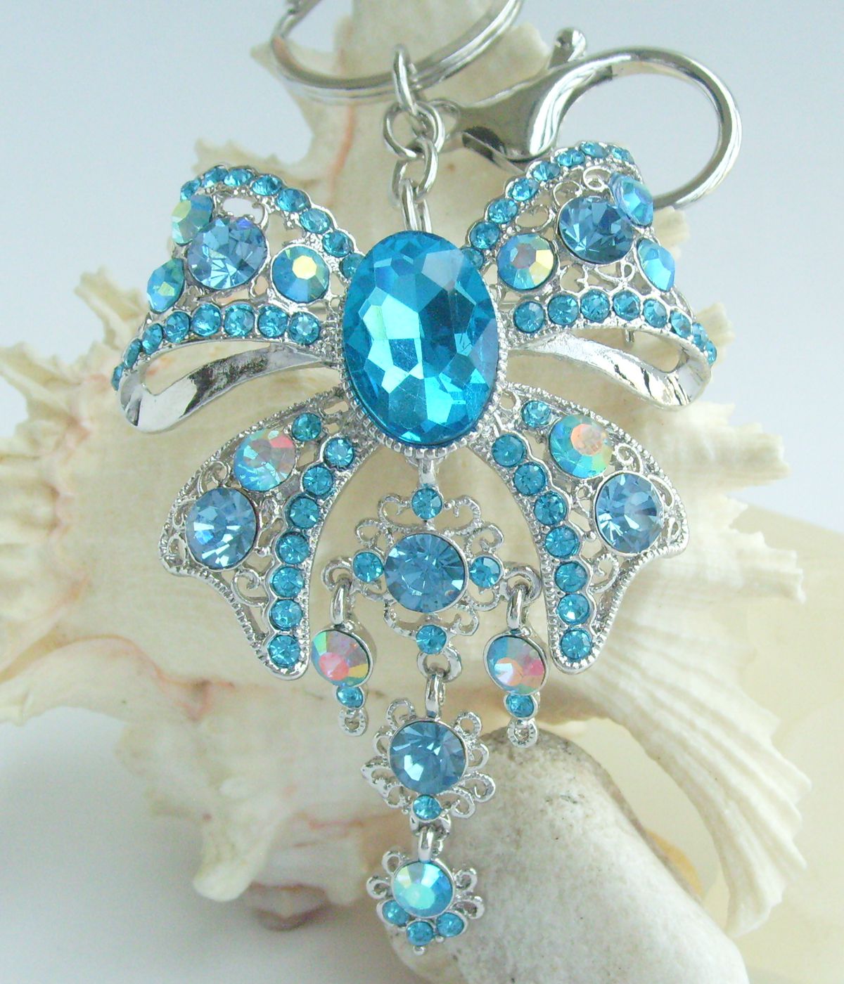 Sindary Rhinestone Crystal Elegant Bowknot Keychain Keyring Pendant KP04503 (Silver-Tone Lake Blue) 40g