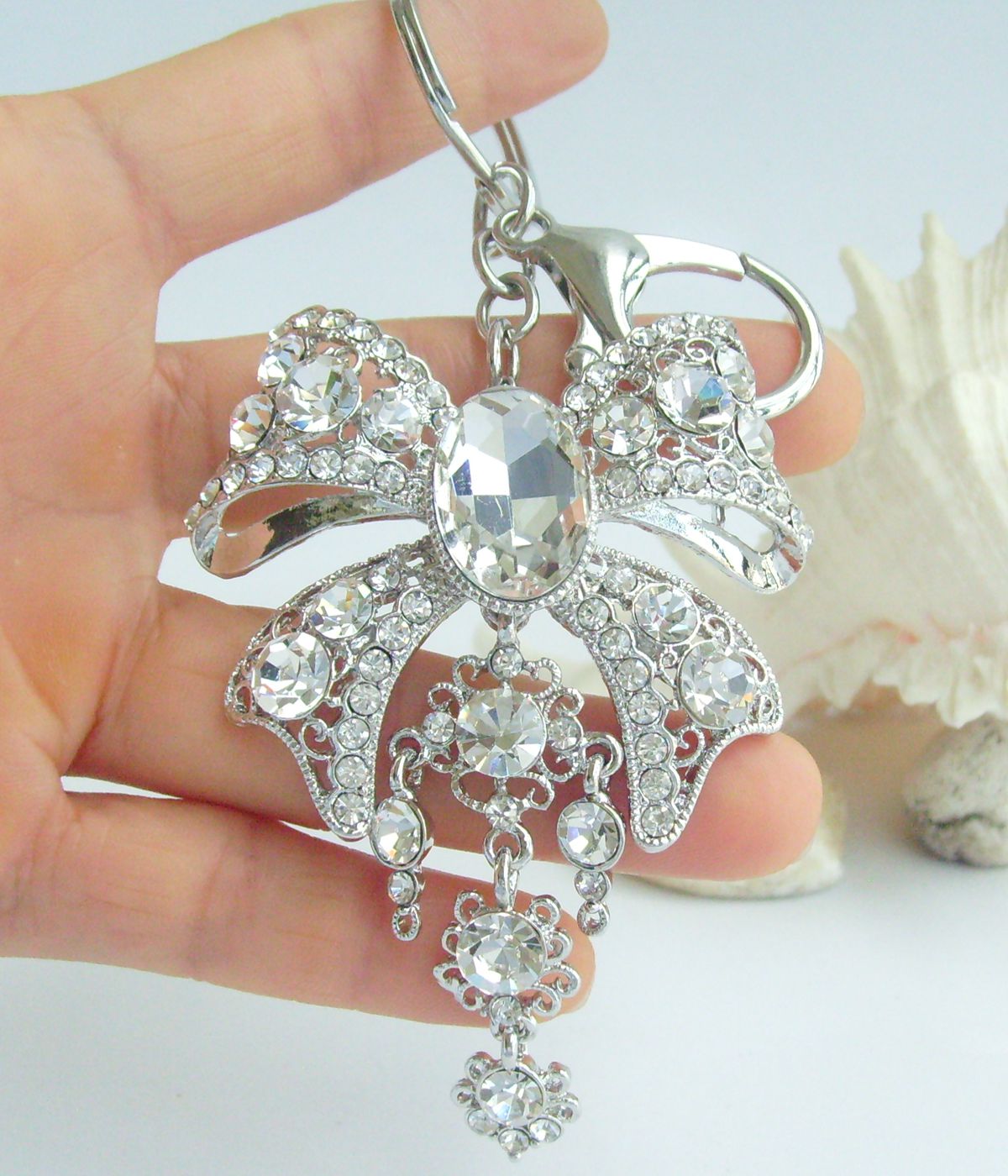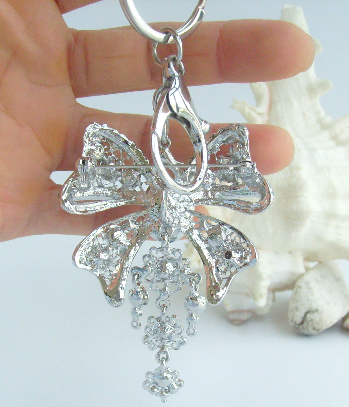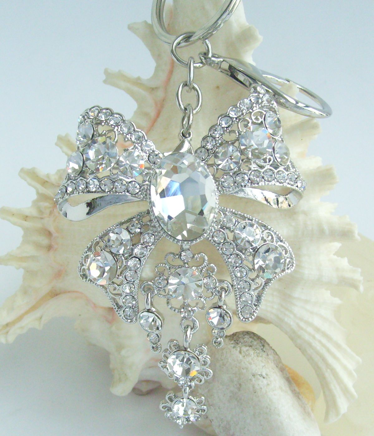 Sindary Rhinestone Crystal Elegant Bowknot Keychain Keyring Pendant KP04503 (Silver-Tone Clear) 40g
