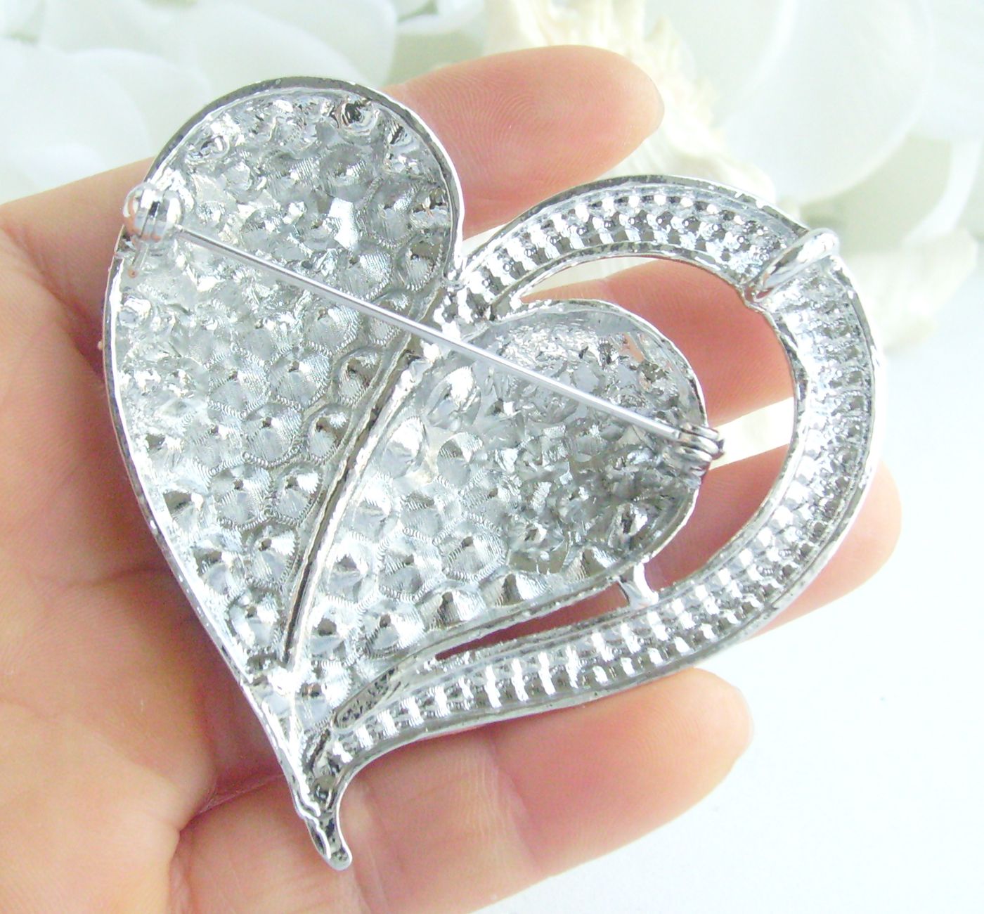 Sindary 2.8 Inch Austrian Crystal Pendant Love Heart Brooch Pin Pendant BP04817 (Silver-Tone Blue) 50g