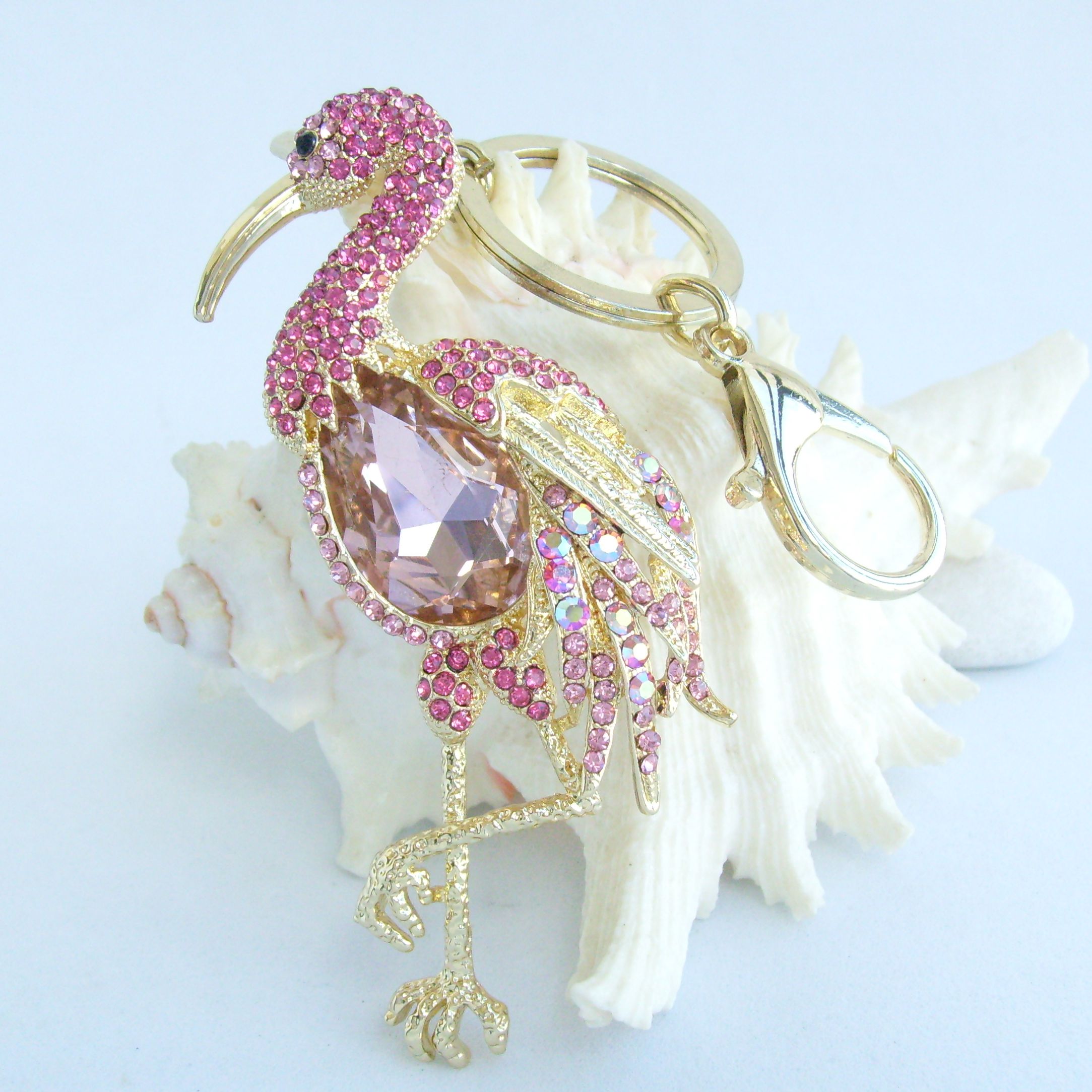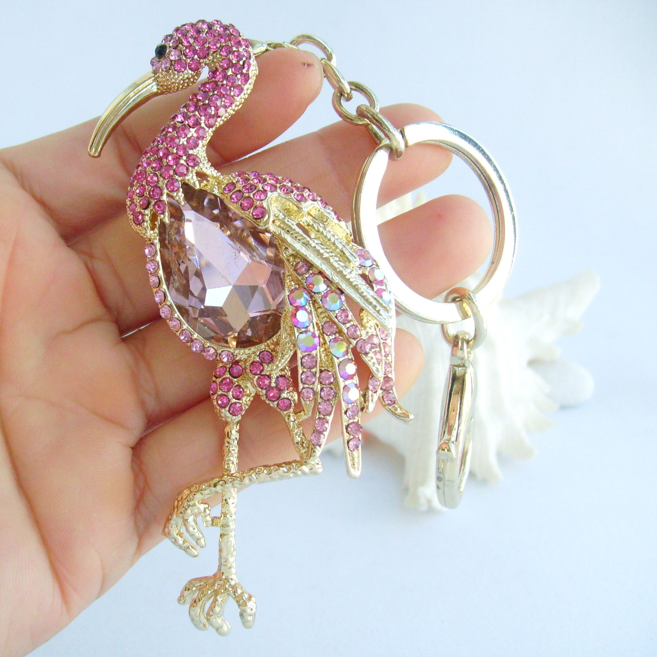 Sindary Elegant Flamingo Keychain Pendant Pink Rhinestone Crystal KP06620