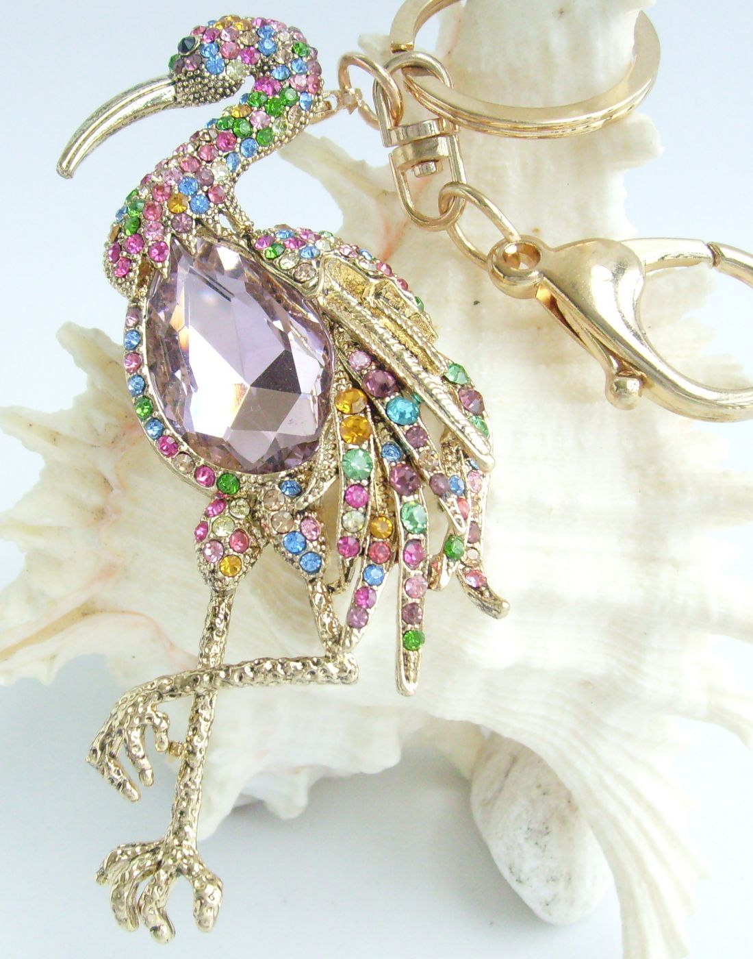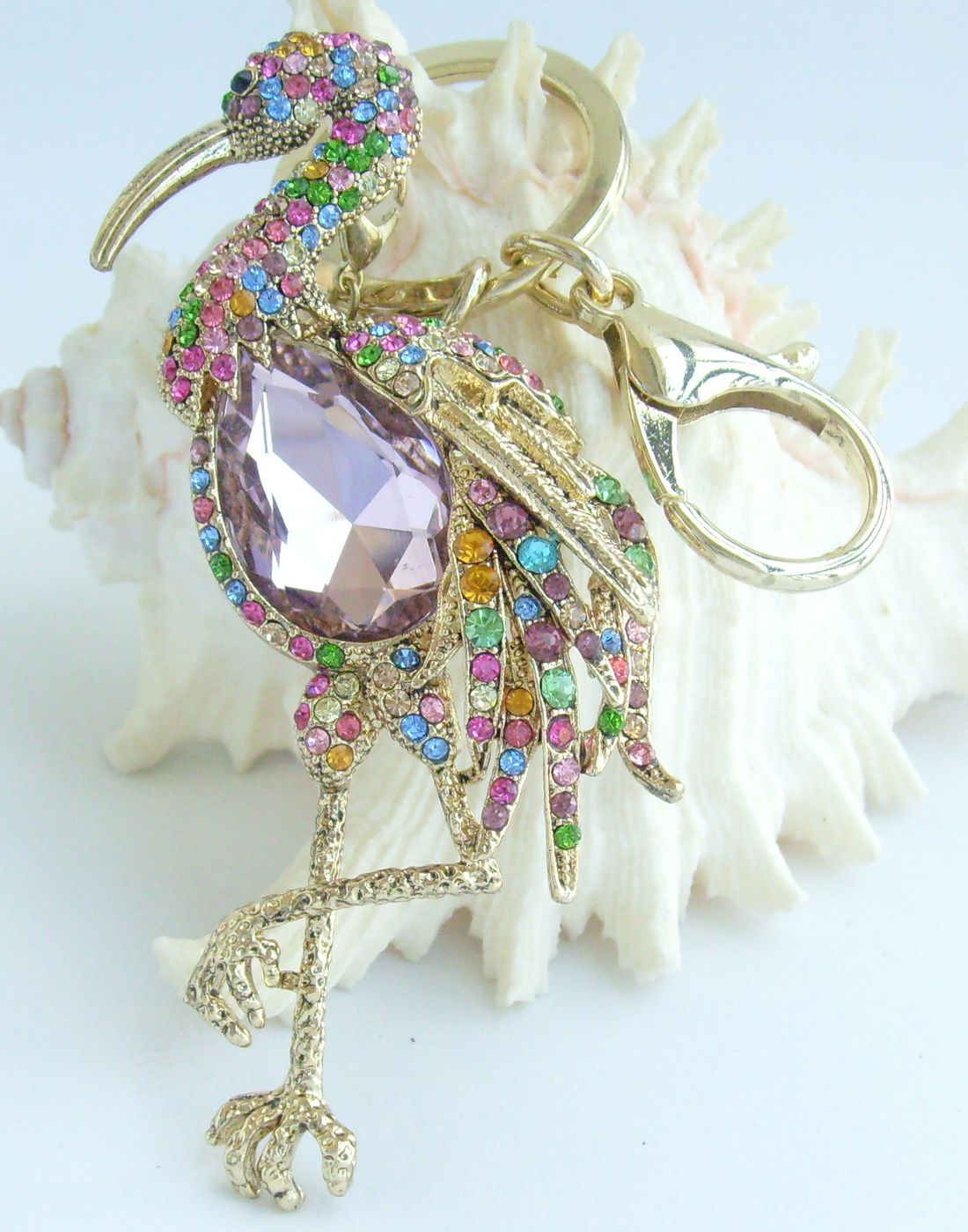 Sindary Elegant Flamingo Keychain Pendant Multicolor Rhinestone Crystal KP06620