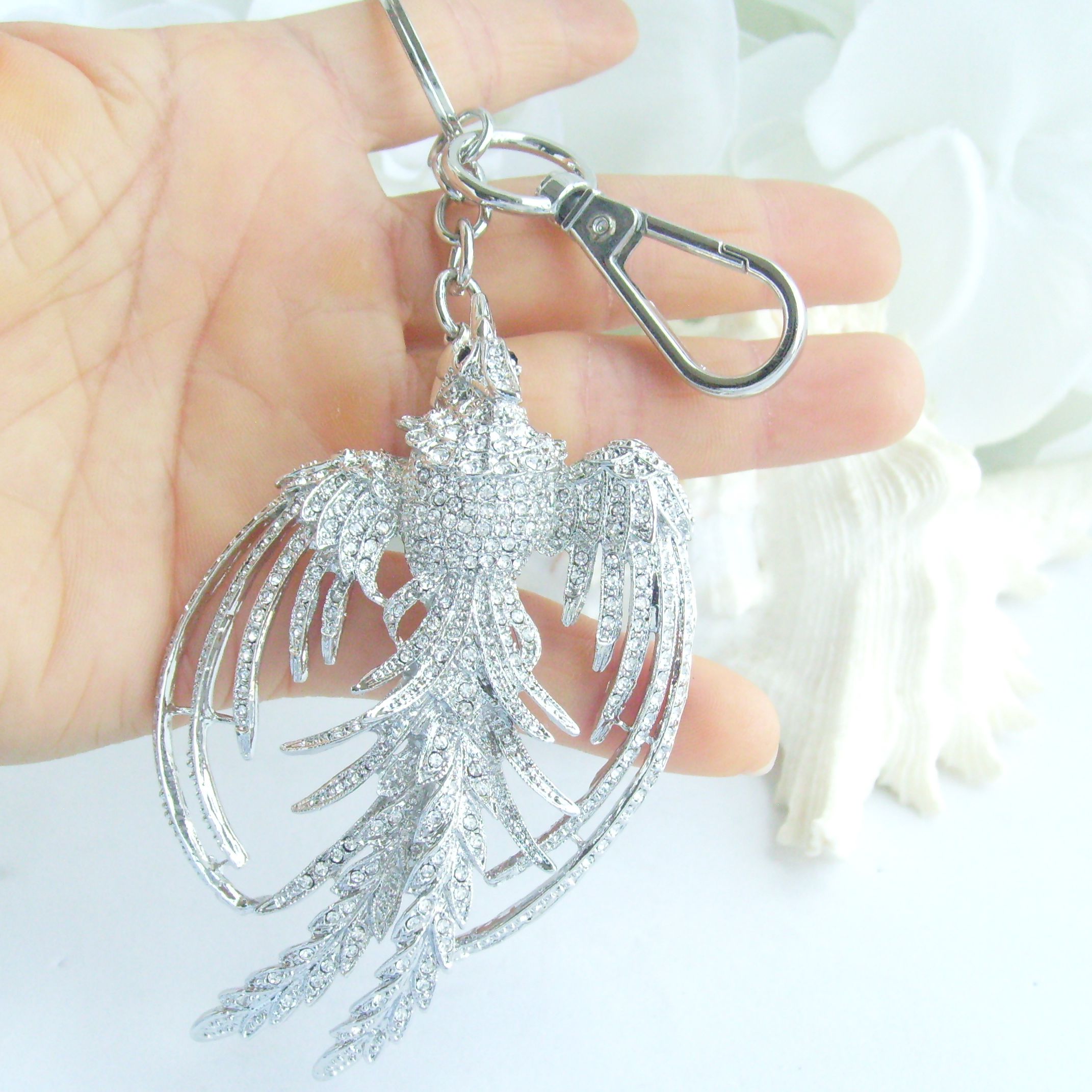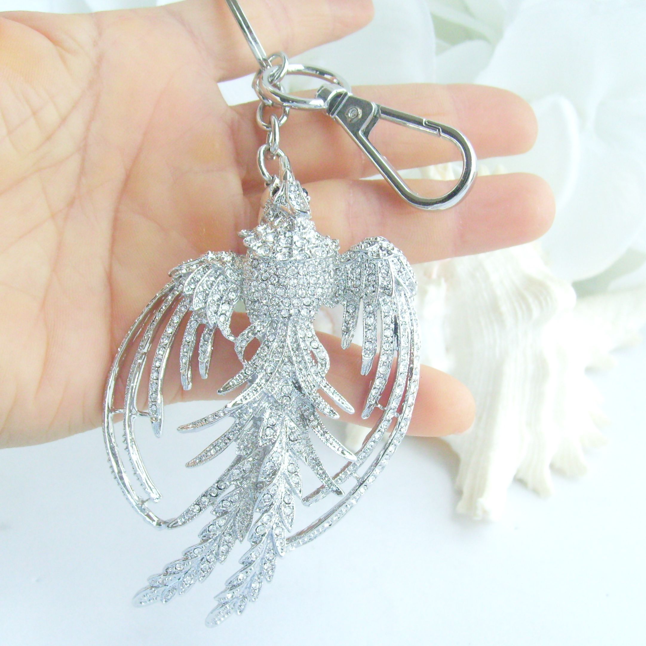 Lucky Bird Phoenix Key chain Animal Key Holder Rhinestone Crystal Pendant Key Ring KP02338
