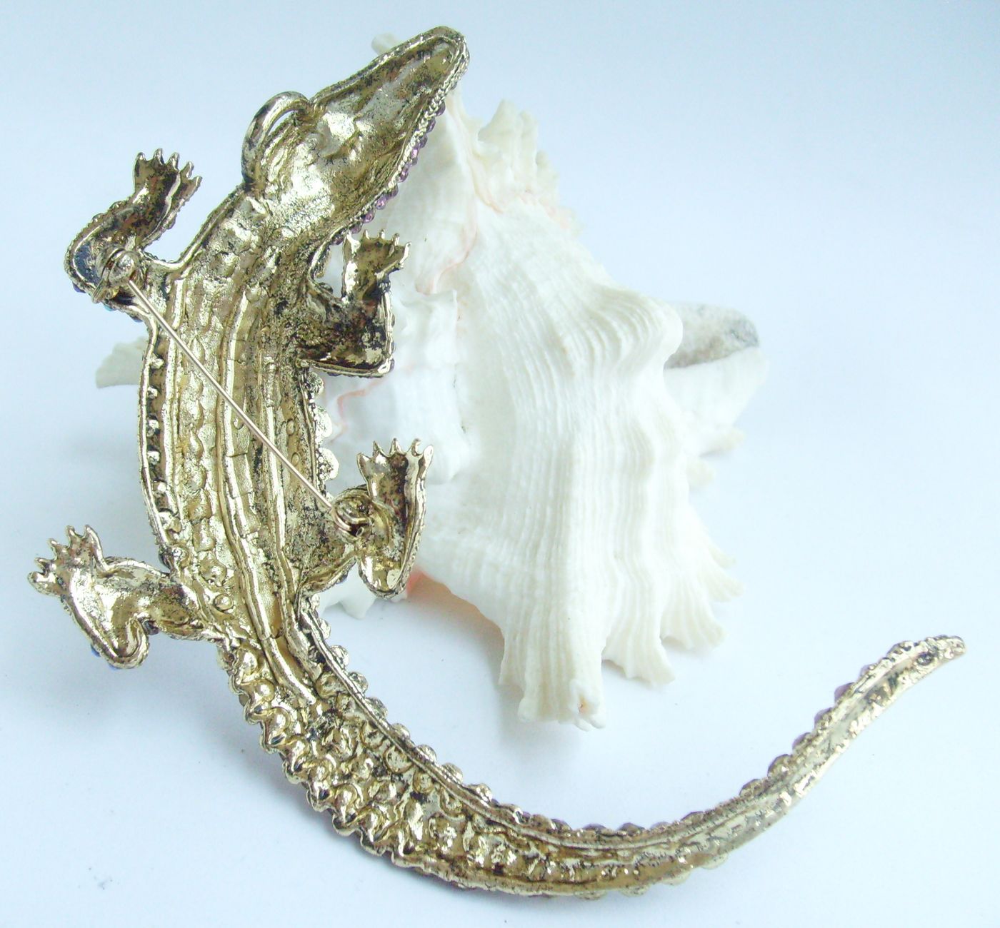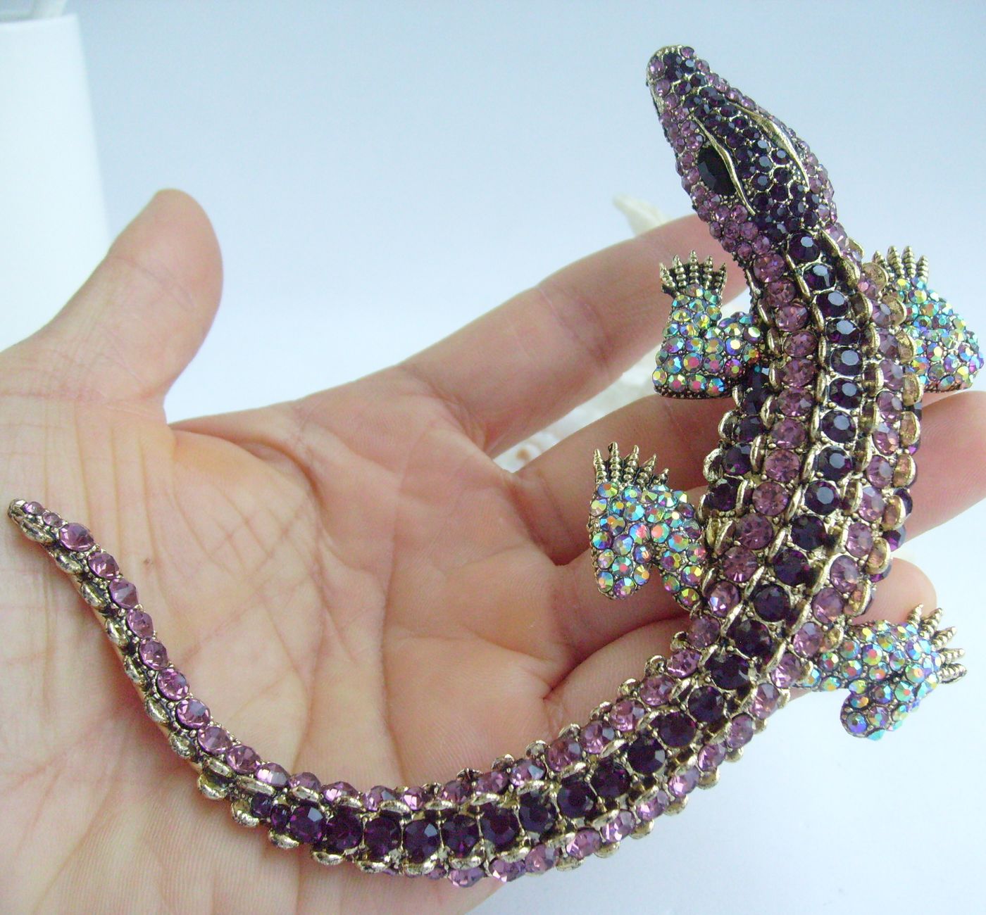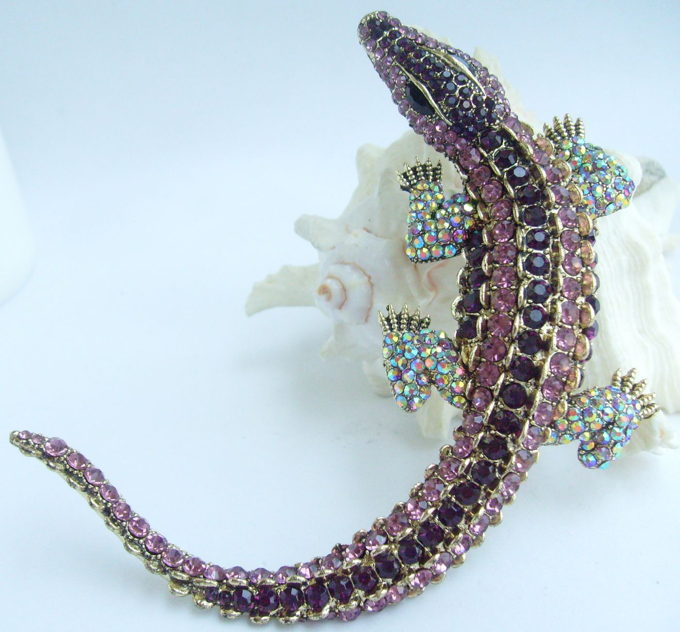 Sindary Unique Alligator Crocodile Brooch Pin Pendant Rhinestone Crystal BP05009 (Gold-Tone Purple) 60g