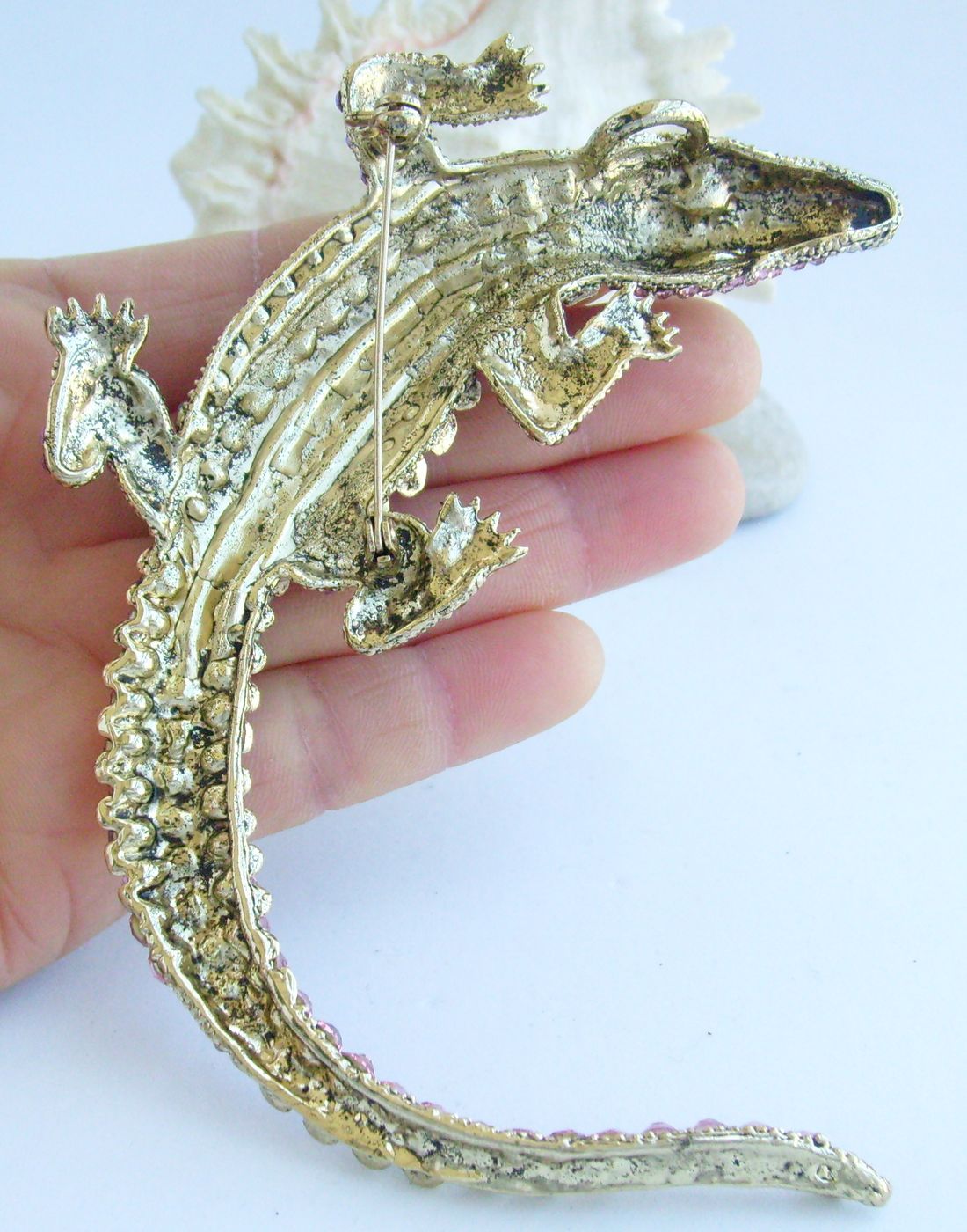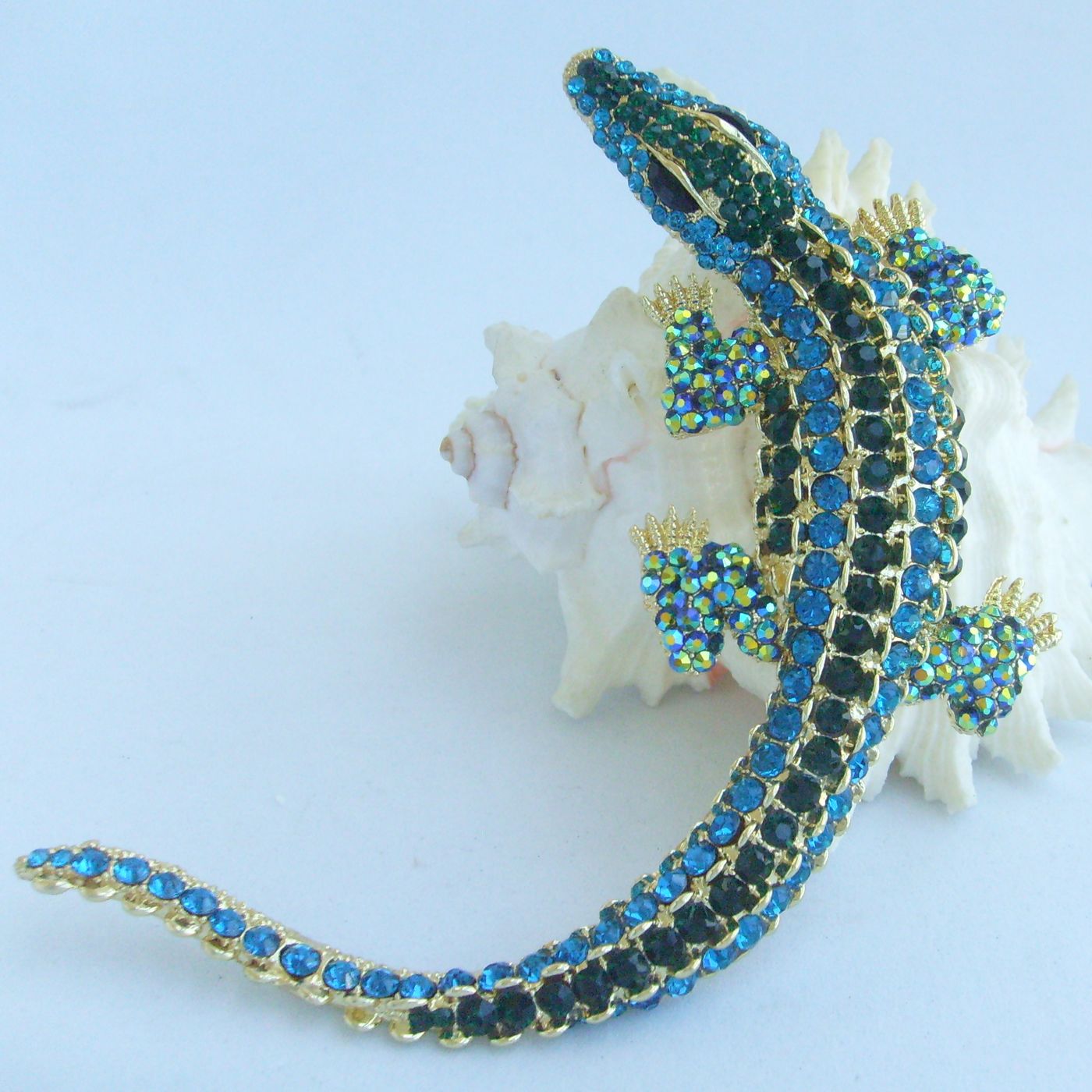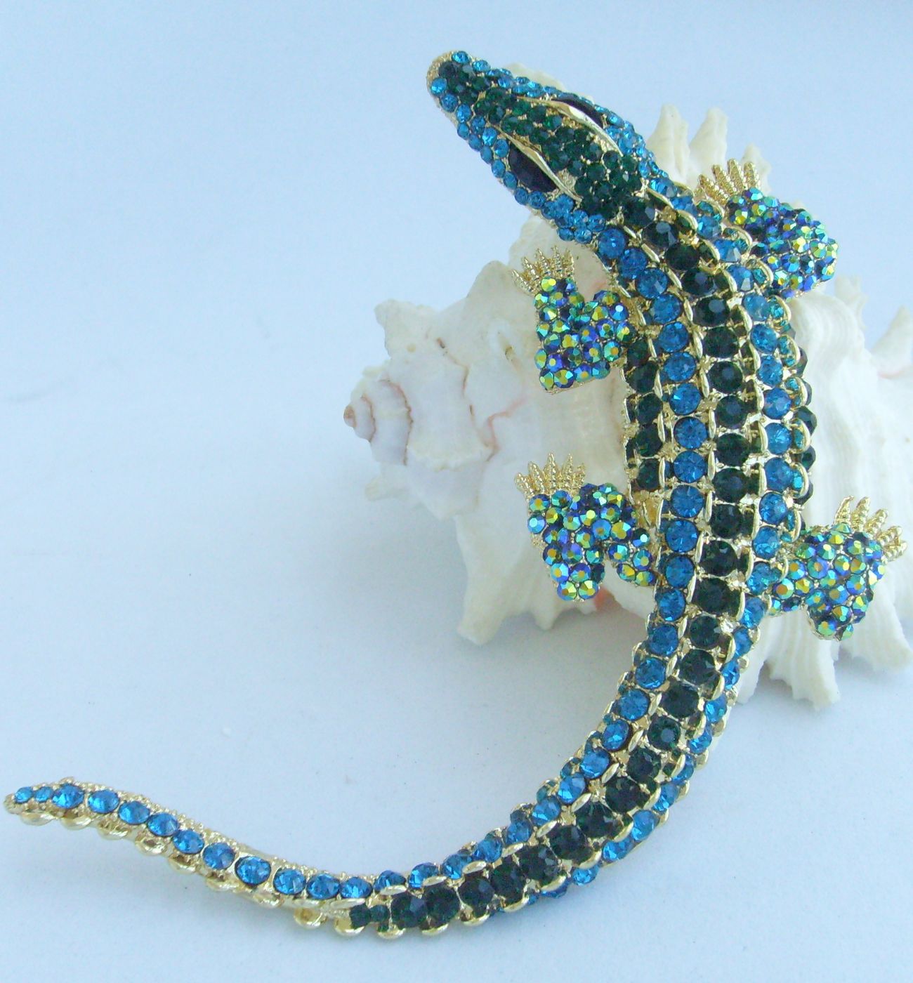 Sindary Unique Alligator Crocodile Brooch Pin Pendant Rhinestone Crystal BP05009 (Gold-Tone Turquoise Green) 60g