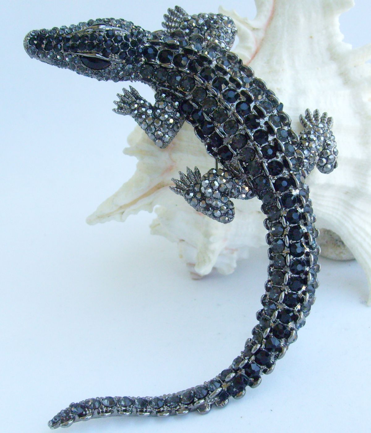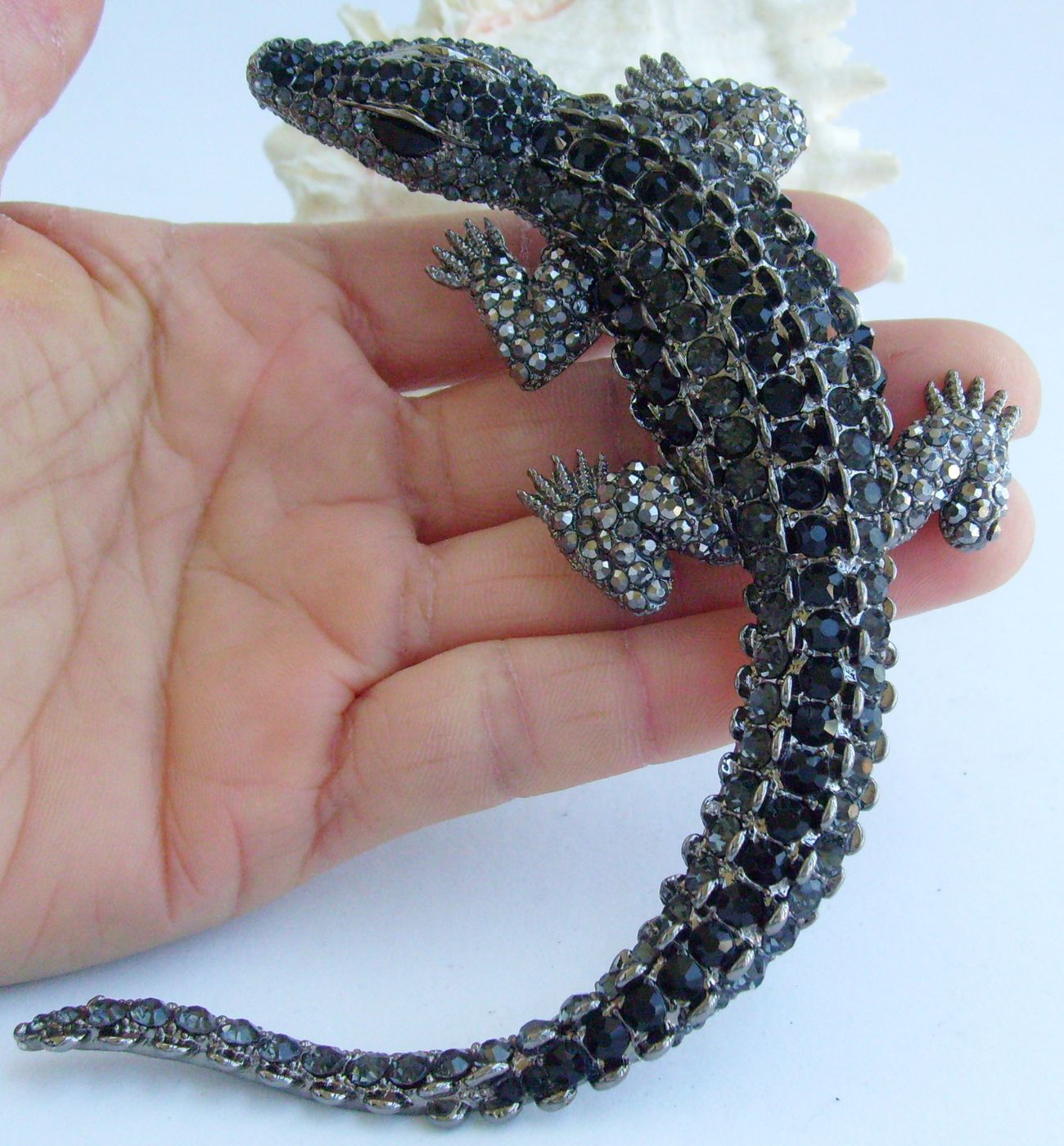 Sindary Unique Alligator Crocodile Brooch Pin Pendant Rhinestone Crystal BP05009 (Black-Tone Black Gray) 60g