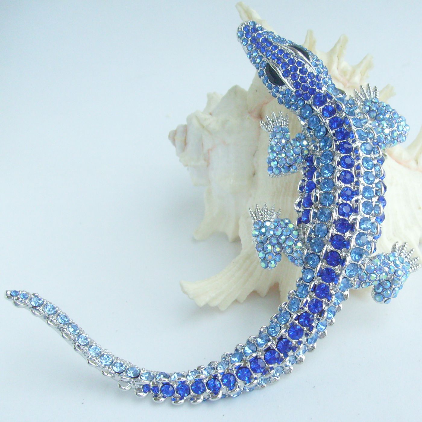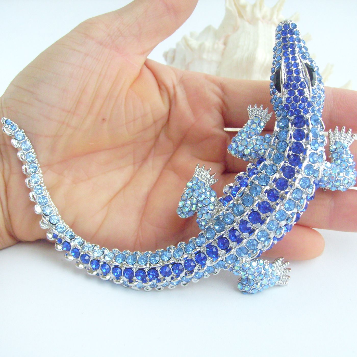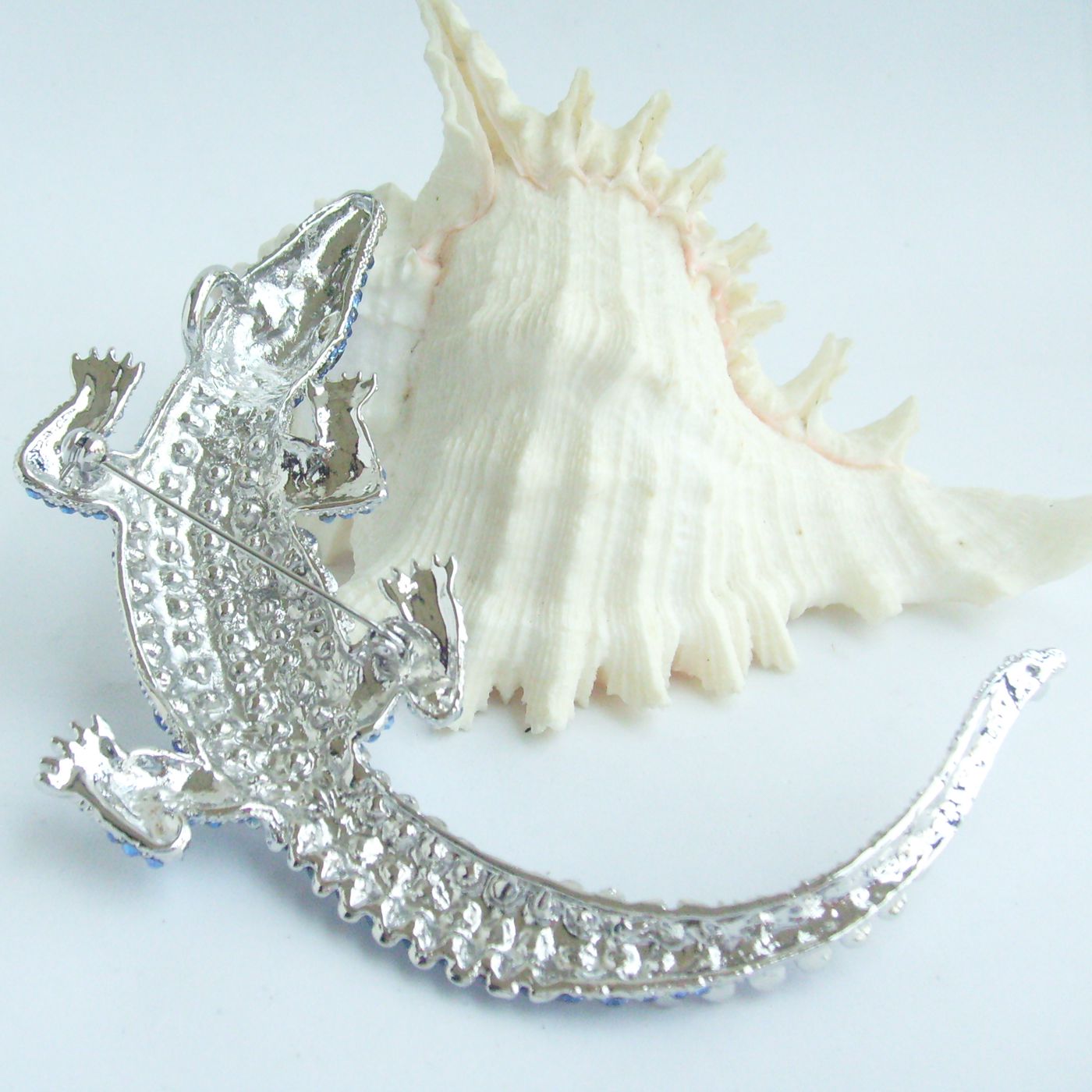 Sindary Unique Alligator Crocodile Brooch Pin Pendant Rhinestone Crystal BP05009 (Silver-Tone Blue) 60g
