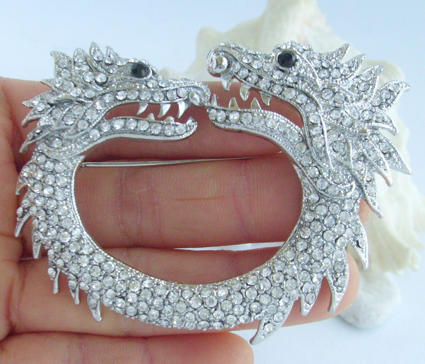 Sindary Animal Unique Dragon Brooch Pin Pendant Rhinestone Crystal BP05007 (Silver-Tone Clear) 35g