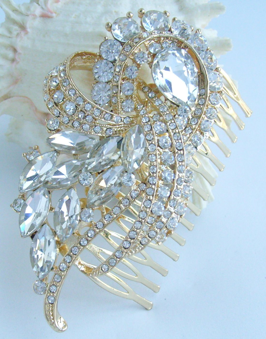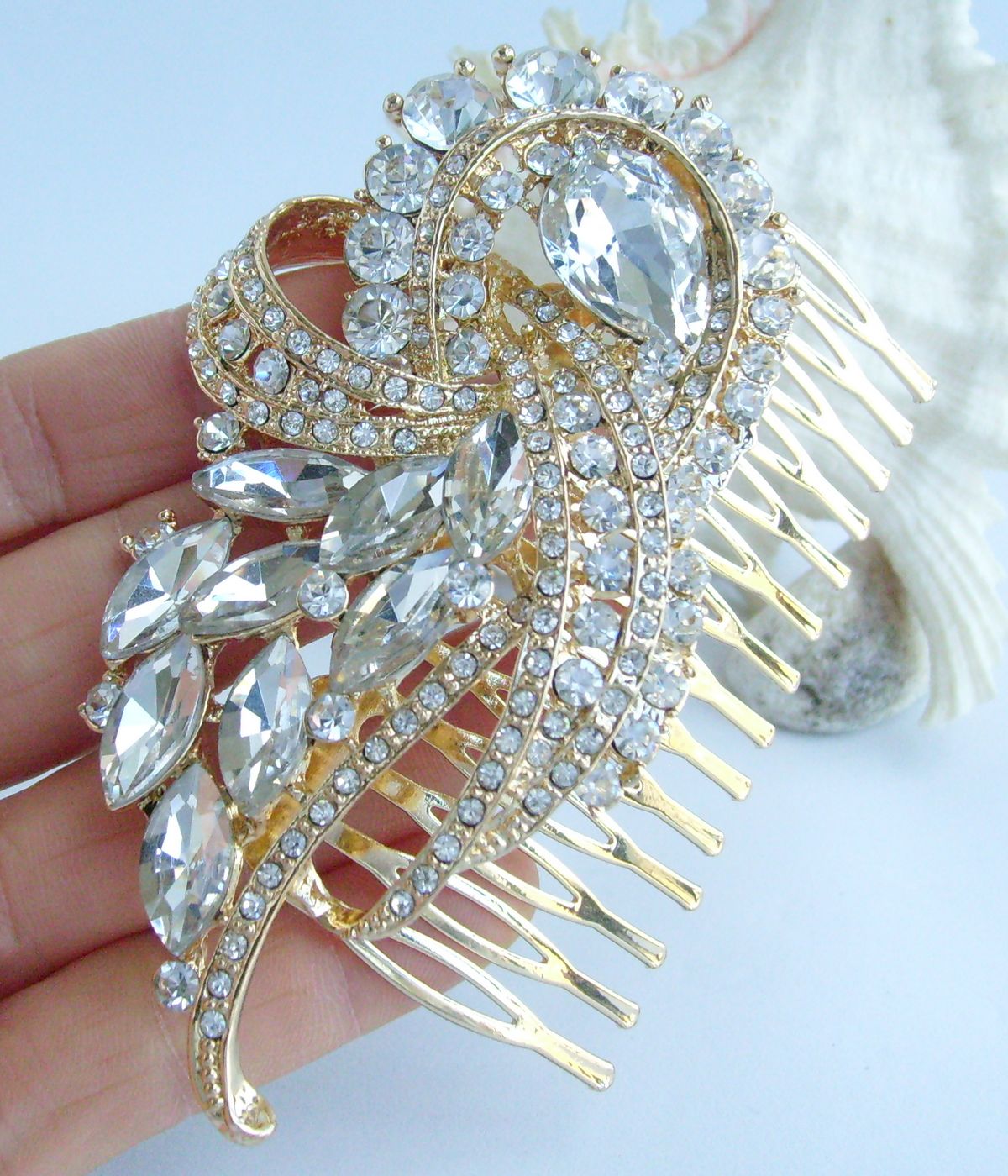 Sindary Wedding Bridal Headpiece Bowknot Hair Clip Side Comb Rhinestone Hair Comb HC04243 (Gold-Tone Clear)