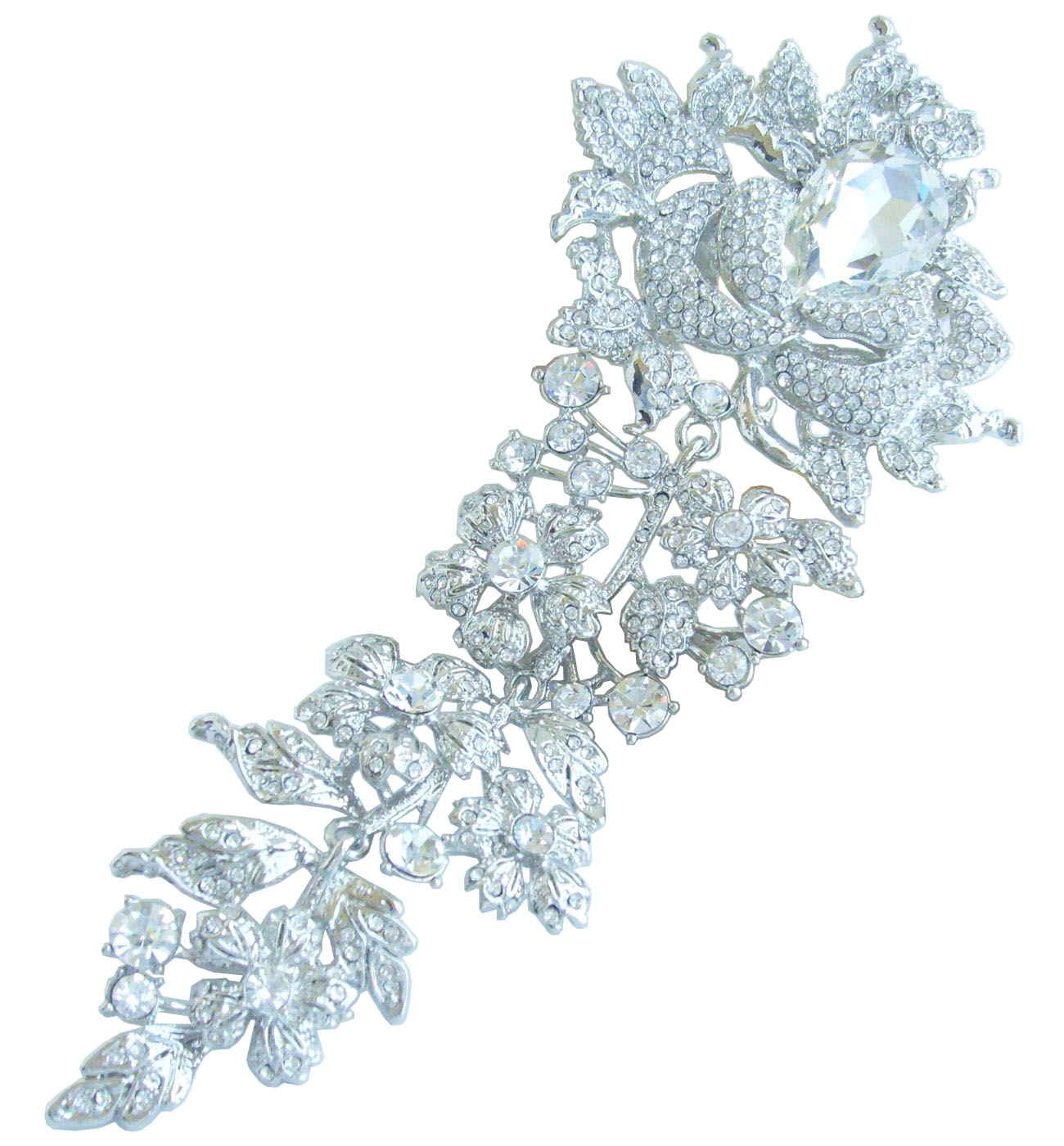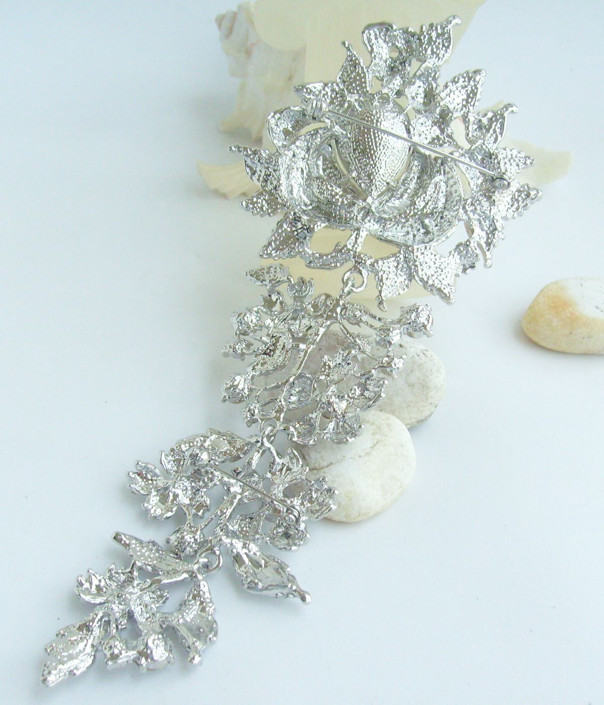 Sindary 7.5 Inch Flower Brooch Pin Pendant Austrian Crystal BP04705 (Silver-Tone Clear) 100g