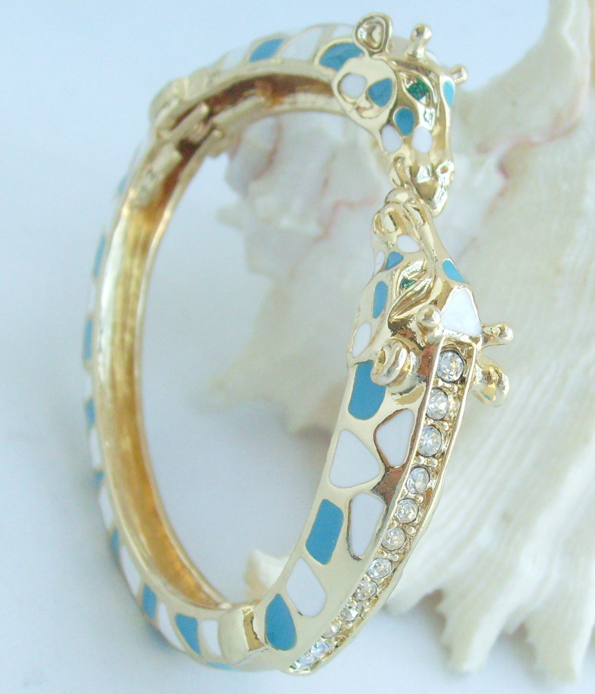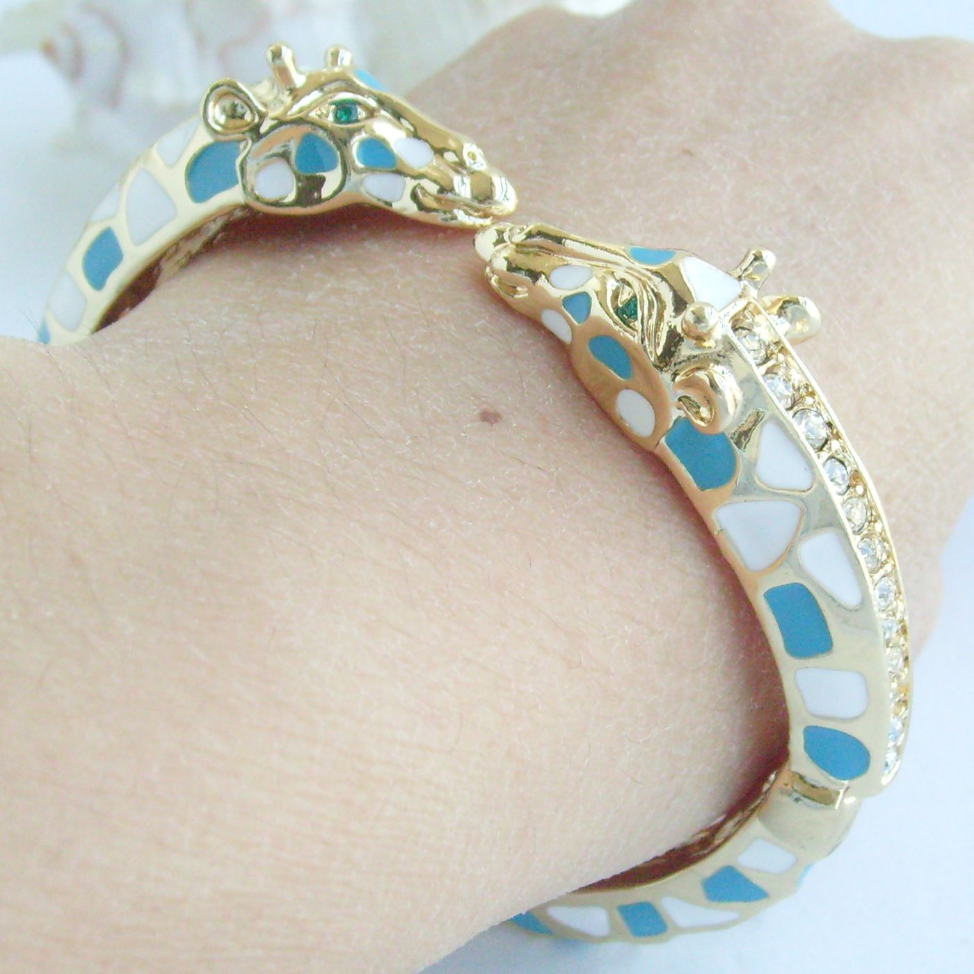 Sindary Unique Animal Giraffe Bracelet Bangle Cuff Clear Austrian Crystal BMC033 (Gold-Tone Blue enamel Spot)